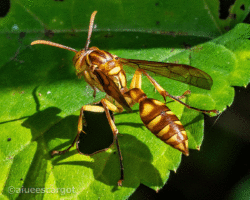 #ムモンホソアシナガバチ #オオハキリバチ #スミスハキリバチ #ヨツボシカメムシ(幼虫) #ナミルリイロハラナガハナアブ #ウスバキトンボムモンホソアシナガバチ暑さの中、1年ぶりにムモンホソアシナガバチを見つけた。クモの巣に引っかかり、脱...