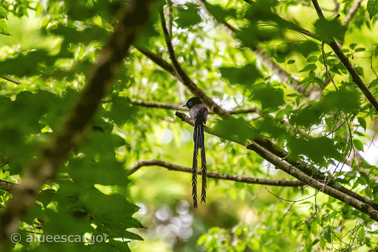 今回はサンコウチョウのメスと、長い尾がもうじき切れそうなオスに出会った。