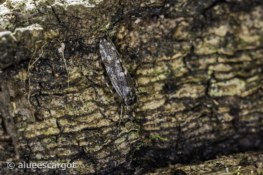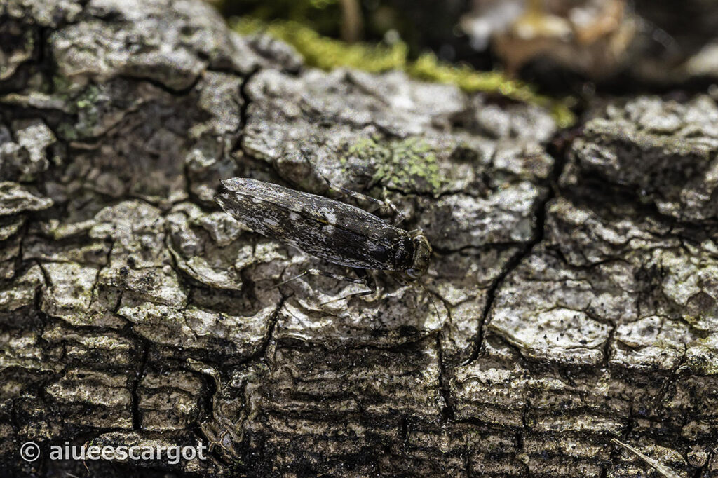 朽ちた切り株に生えたキノコを見ていたとき、チョロチョロと歩いていた “オオウロコチャタテ” を捕獲。