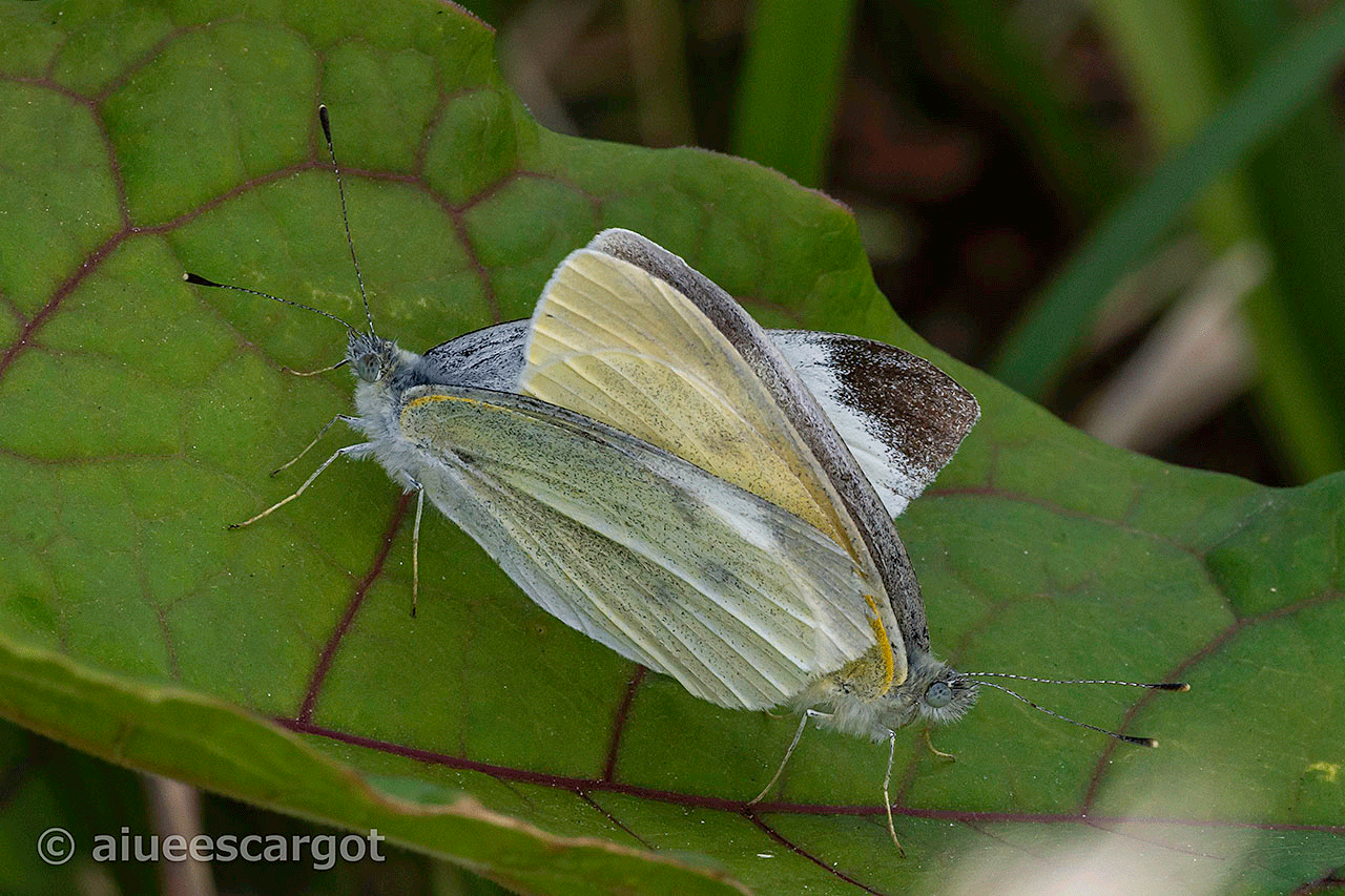 今月初め、同じ日にモンシロチョウのペアとキタキチョウのペアを見た。