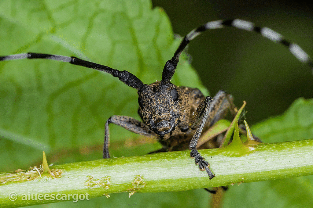 長い触角のヒメヒゲナガカミキリ。どこでも見かけるごく普通のカミキリムシだったはずですが、このごろはメッタにお目にかかれなくなりました😓
