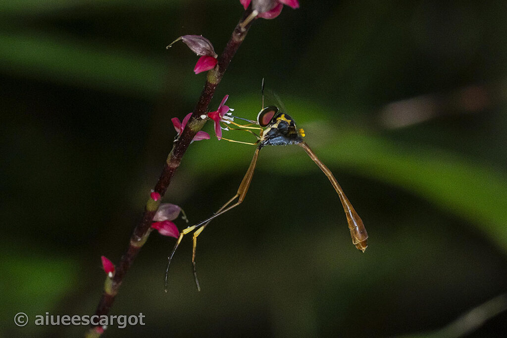 毎年夏になると見かけるニトベハラボソツリアブはご覧の通りの細くて小さく細めの体と、登場する場所が薄暗いこともあり、思うように写真が撮れない(>_<)