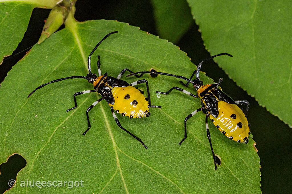 成虫は黒っぽく地味な体色ですが、幼虫は前翅が短く、黄色い腹部がむき出しになっているためよく目立ちます💣️