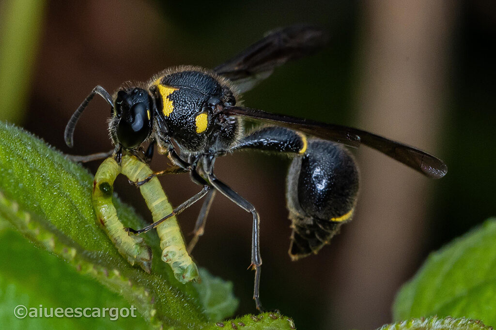 昔?はサムライトックリバチと呼ばれたムモントックリバチがアオムシをムシャムシャ。