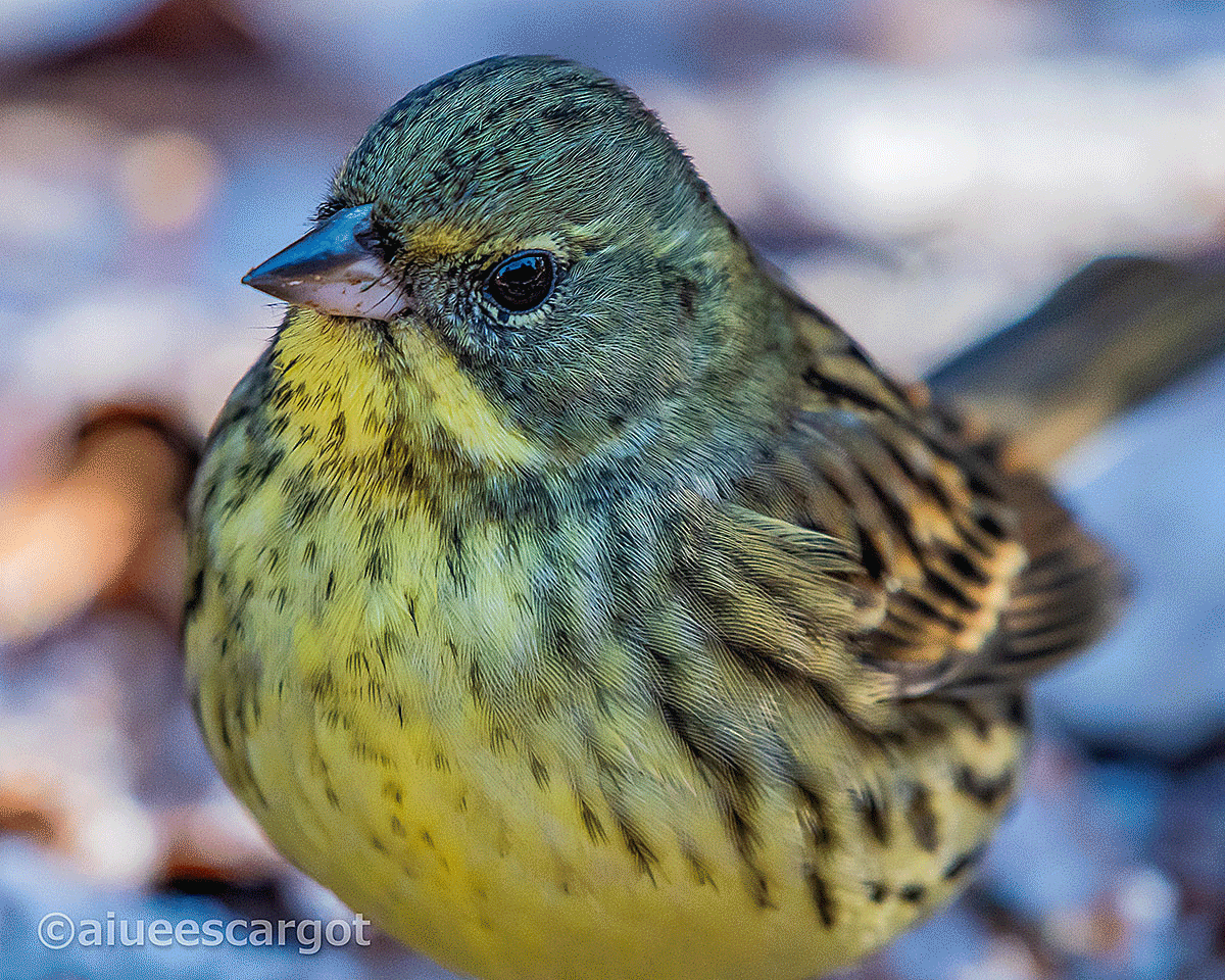 警戒心が薄れる食事時は超接近できるので、アオジの表情を間近にとらえることができます😁