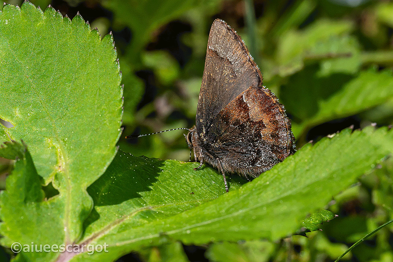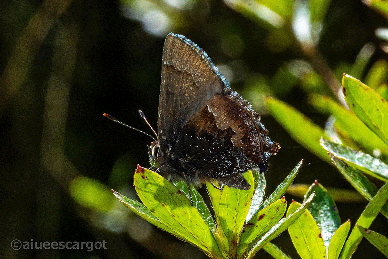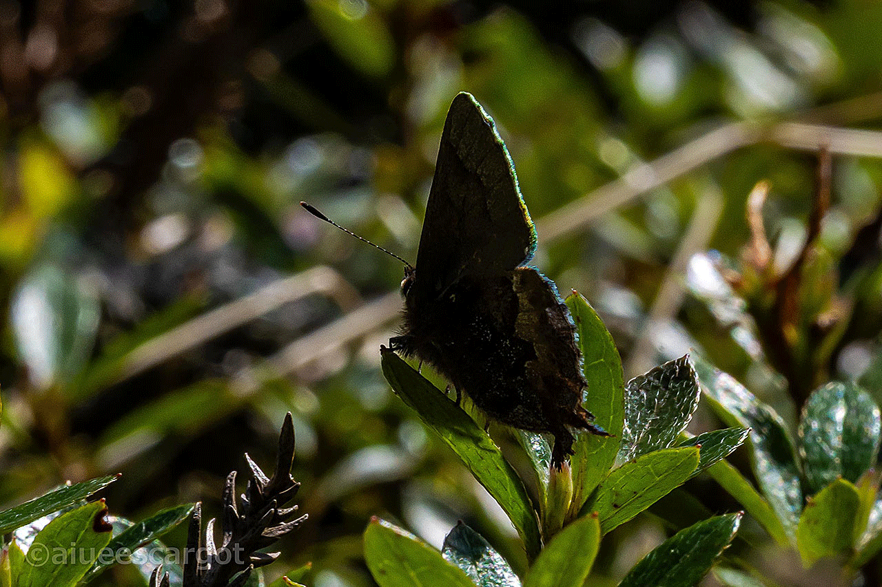 コツバメの斜め後ろ姿。翅は開かなくても閉じた翅の隙間からキラキラ輝くブルーがとても気になります(@_@);;;