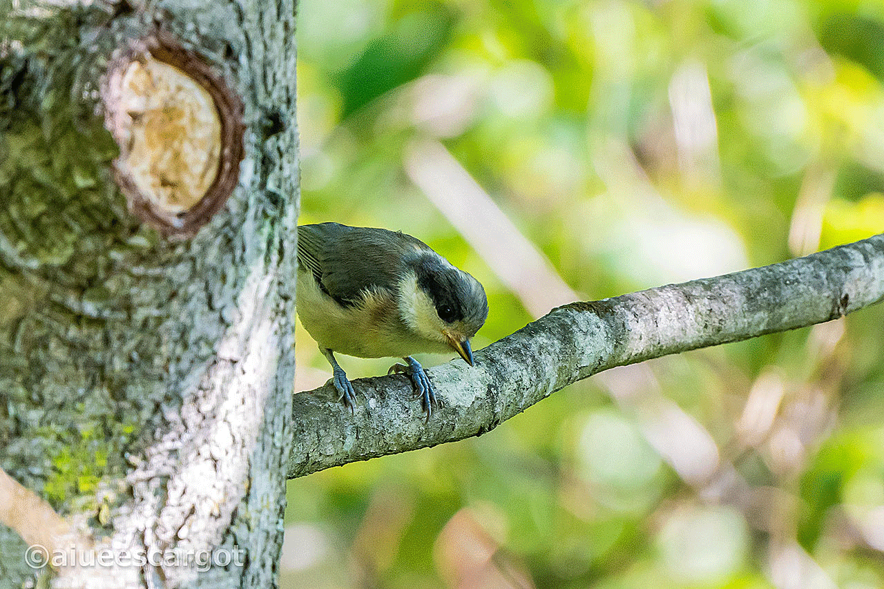 パッと見、後ろ姿が成鳥のような若いヤマガラの後ろ姿。グレーがかったブルーは若さのシンボルカラー💙!!