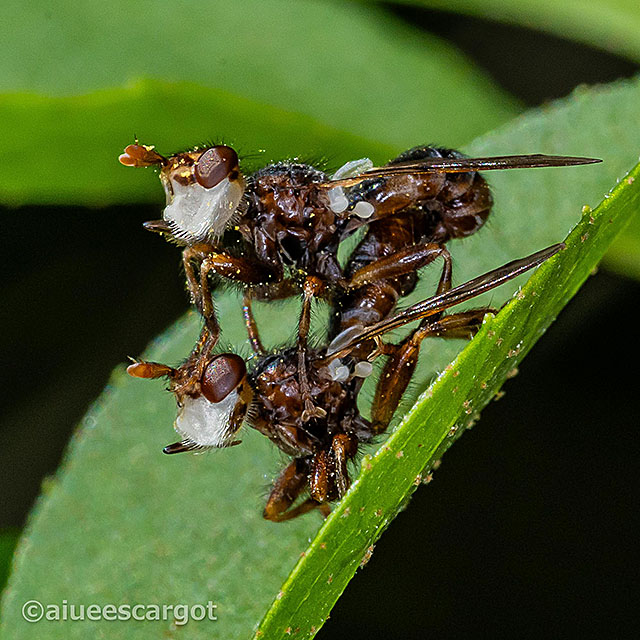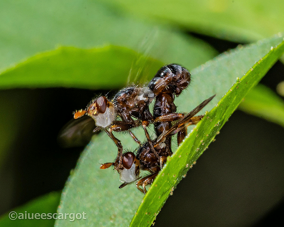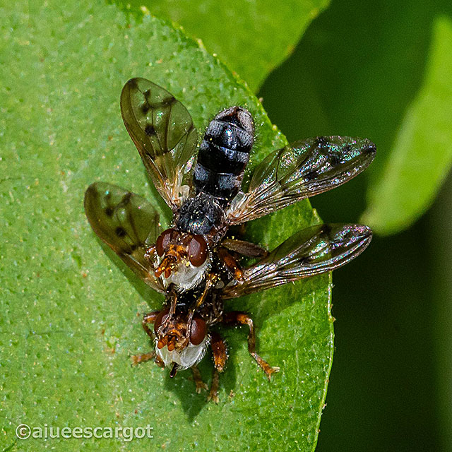 マダラメバエはぜひ正面からアップで撮りたい被写体だったが、風の中前に回り込もうとした途端、逃げられてしまった😮💦