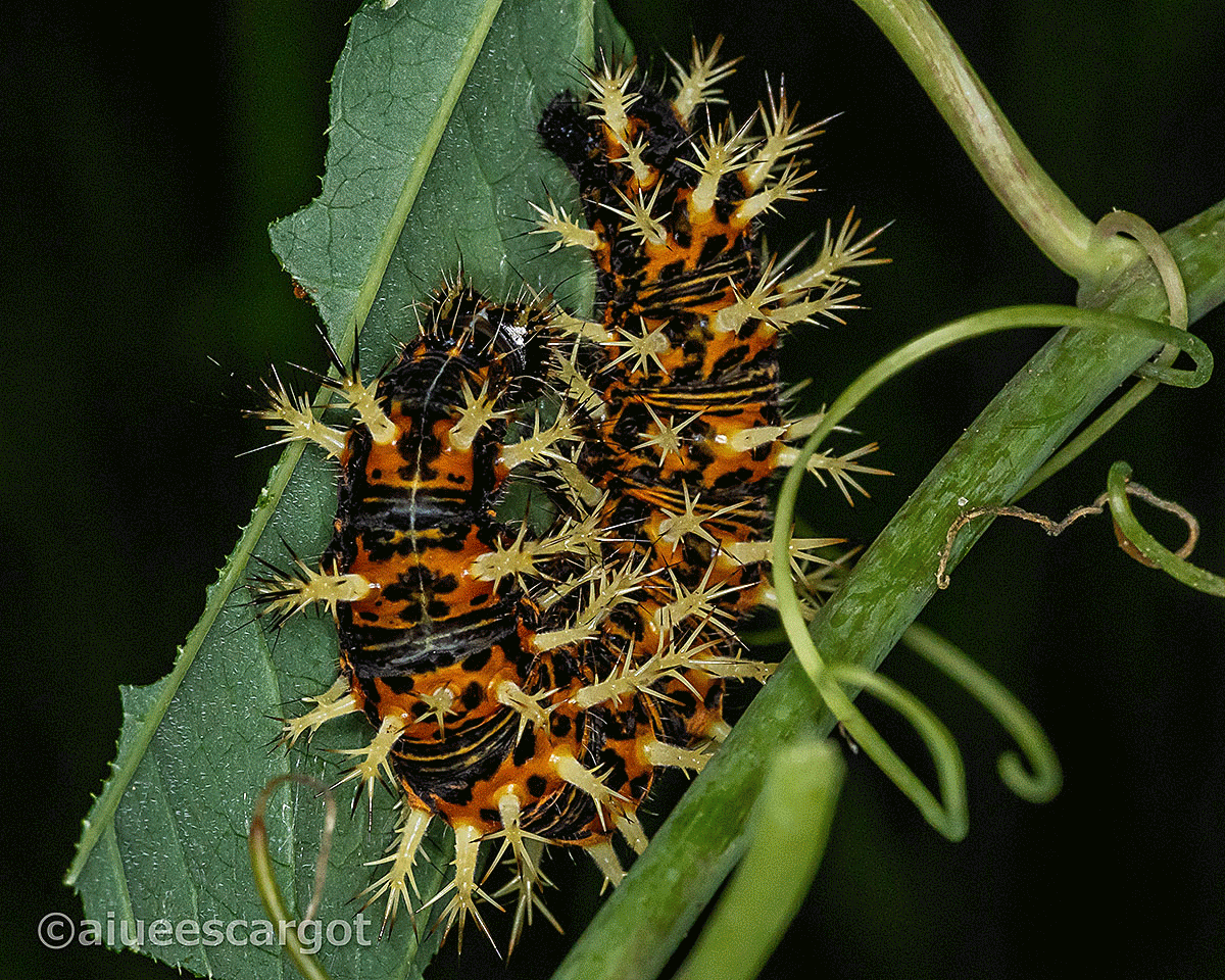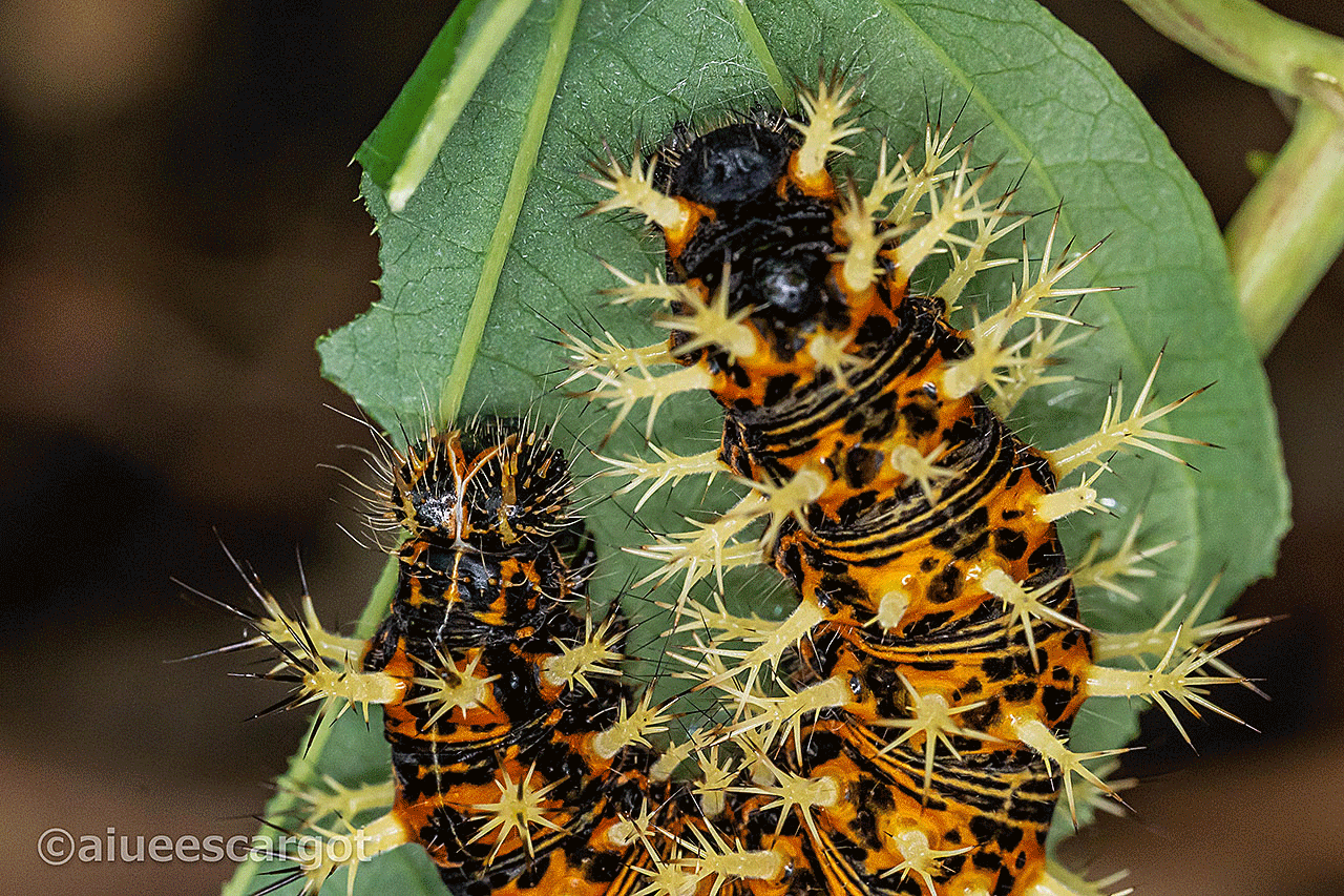 ド派手なケバい色彩の全身トゲだらけの毒ケムシのような幼虫が、見とれるほどキレイな成虫に変身するなんて、自然はスゴい🦋