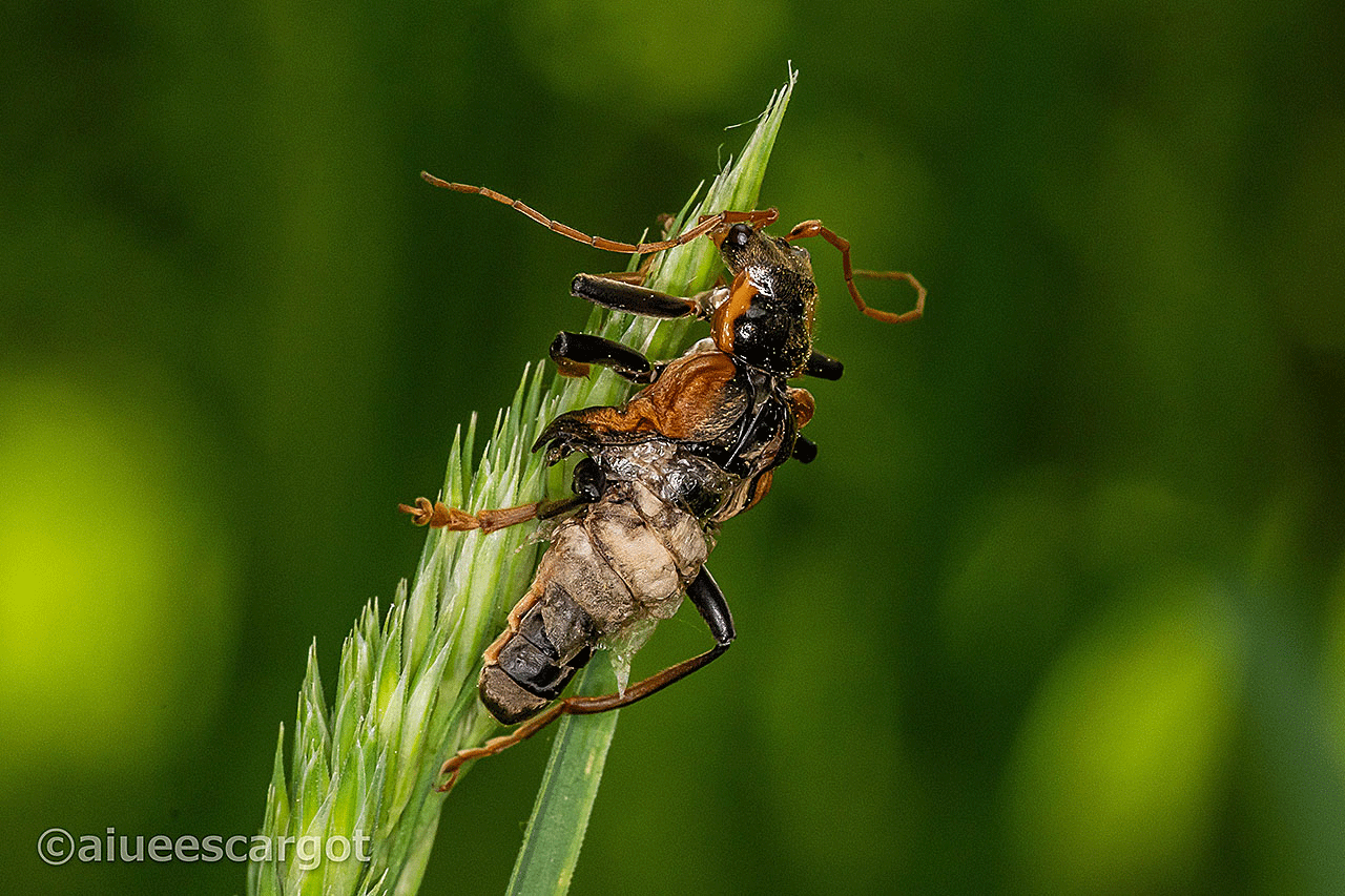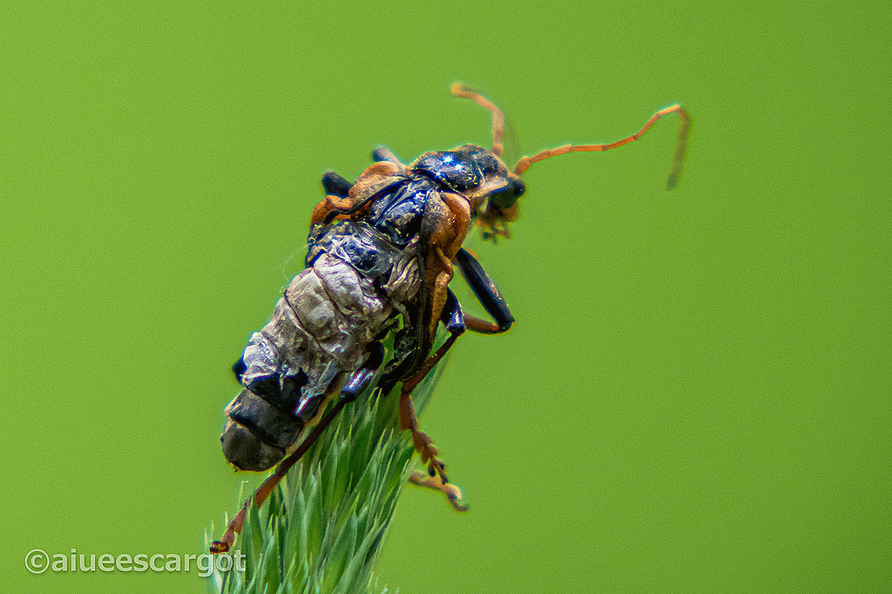 一見して羽化不全と思われるジョウカイボンが風に揺れる草にしがみつくように止まっていた。
