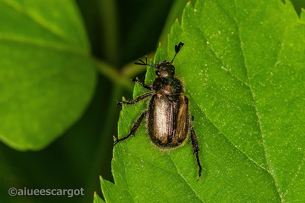 最初気づいたとき複数のキスジコガネがいたが、散るように葉の裏などに隠れてしまった。