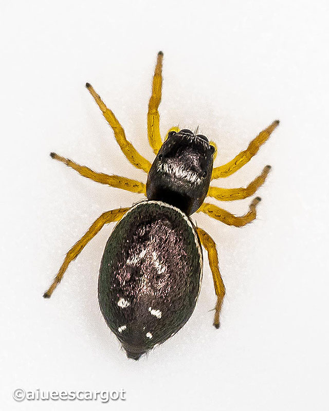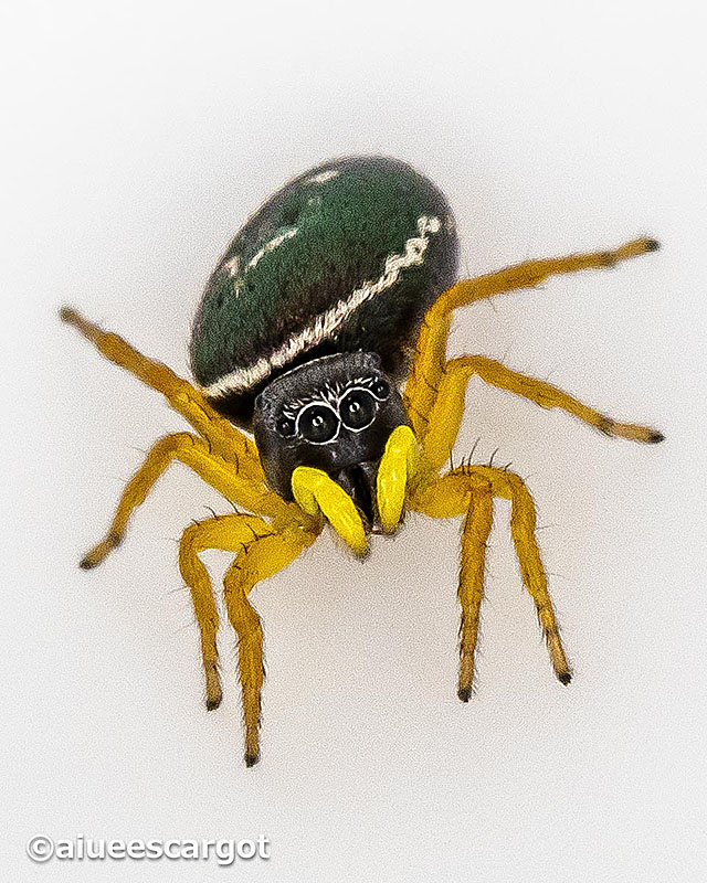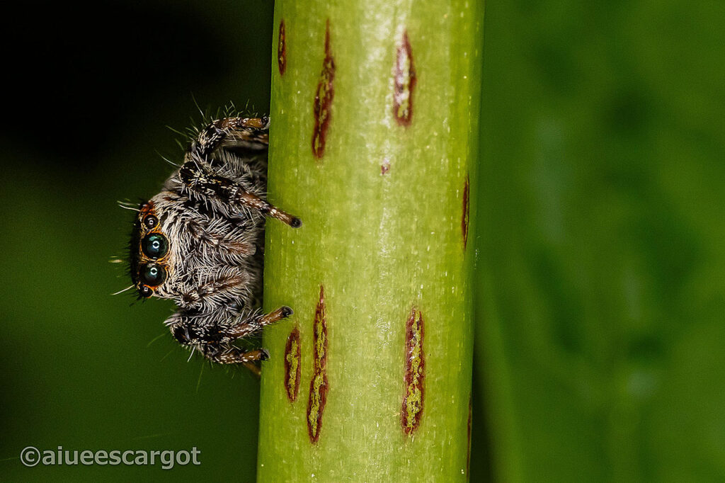 マミジロの”マミ”は漢字で”目見”と書くらしい。目はパッチリとして、いかにもハエトリグモのようなマミジロハエトリ。