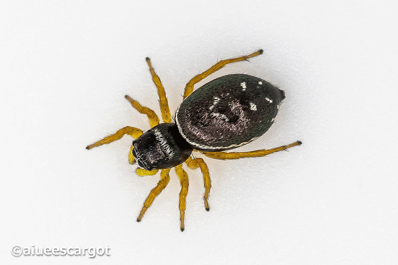 動きの遅いハエトリグモはいないが、イナズマハエトリもまずジッとしてくれない。