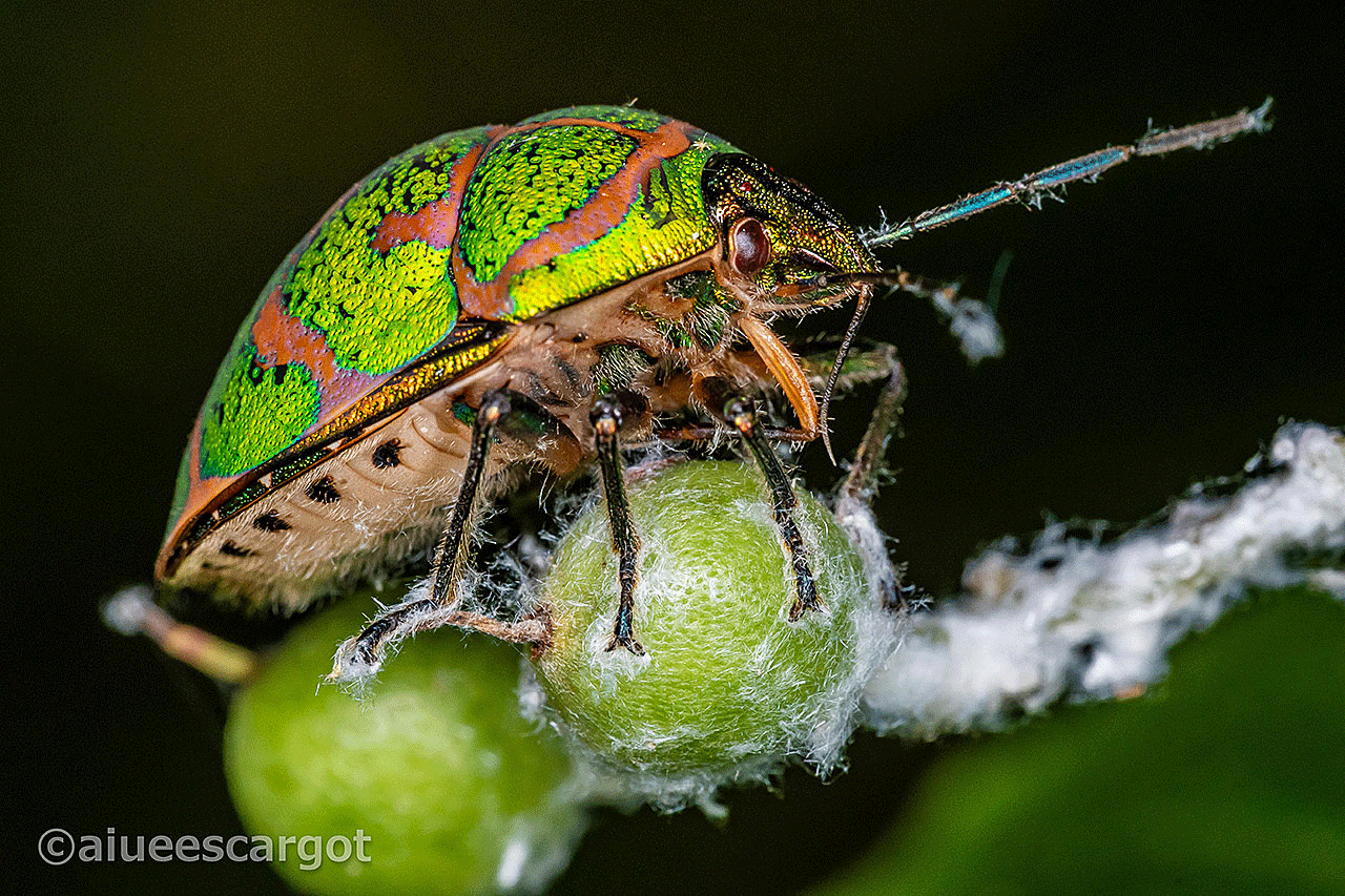 ある朝、アカスジキンカメムシが一心不乱に吸汁する姿を初めて見ました(^ー^)b