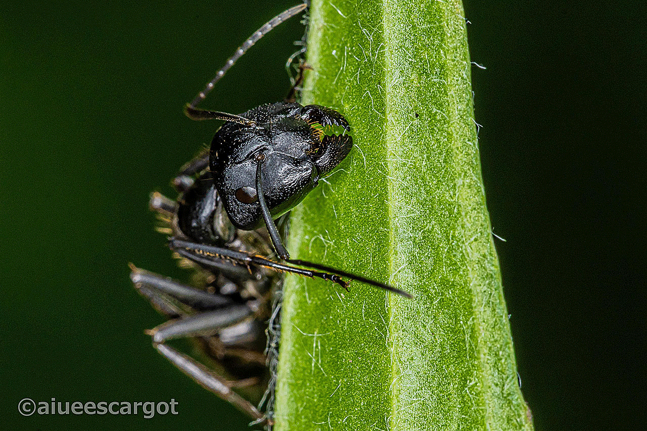 一匹のクロオオアリが葉の先にしがみつくようにして脚でリズムを刻んでいた。彼(?)の耳にはリズムを刻ませるような音(音楽)が聞こえているのだろうか💓???