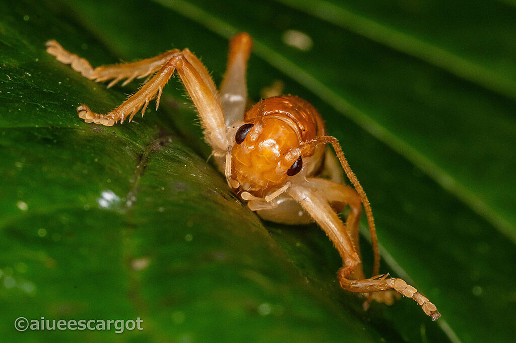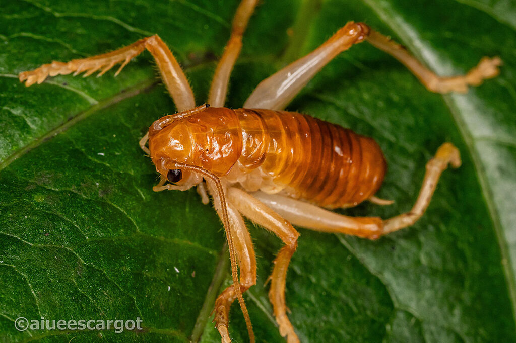 ハネナシコロギスは夜行性。昼間はササの葉や広葉樹の葉で巣を作り、その中に潜んで、夜になると活動するそうなので、ワタシがこれまでみたことがなかったのも当然です。