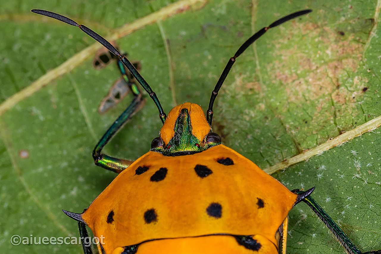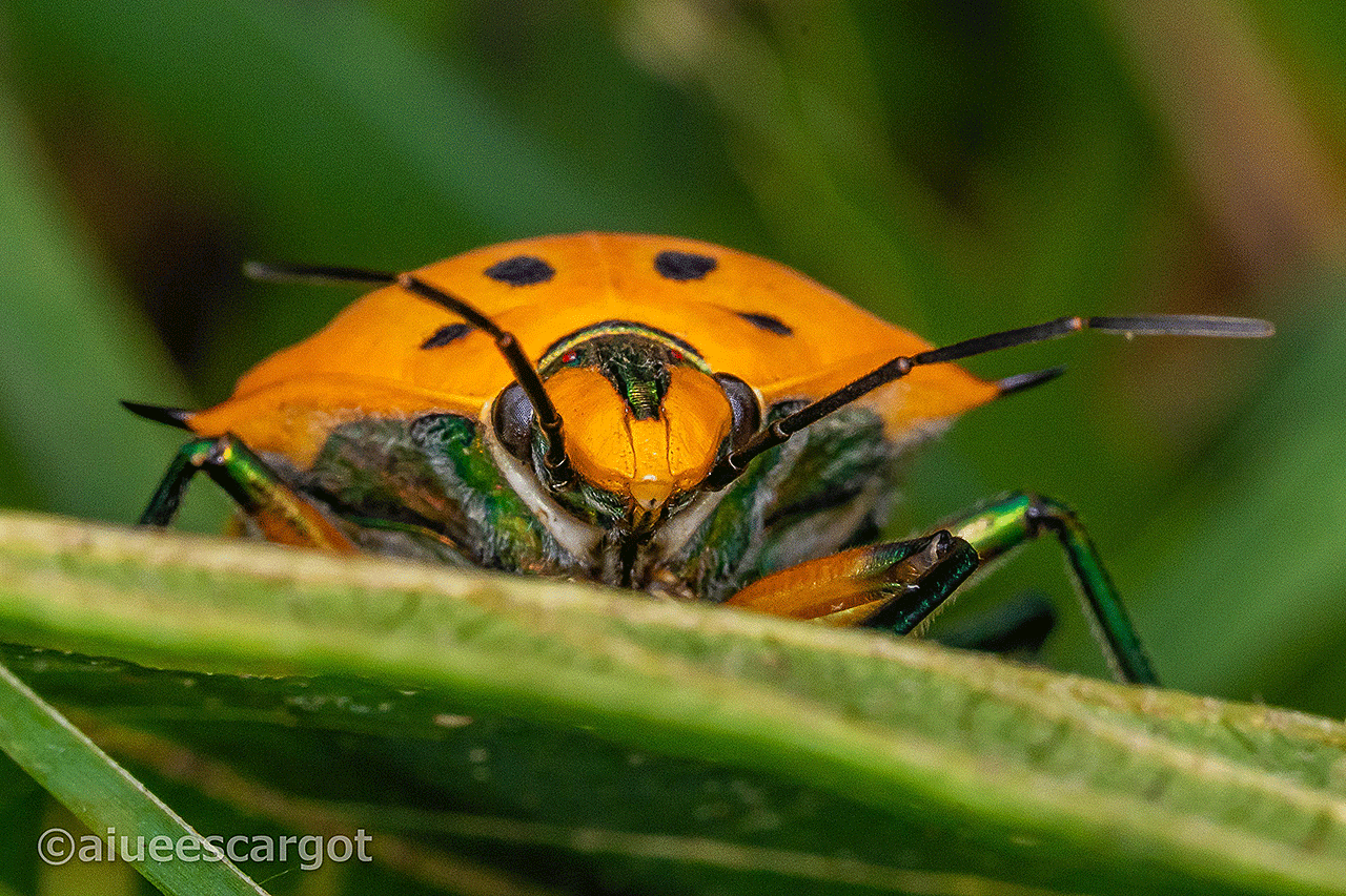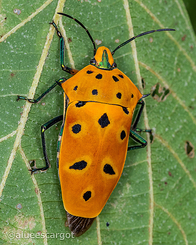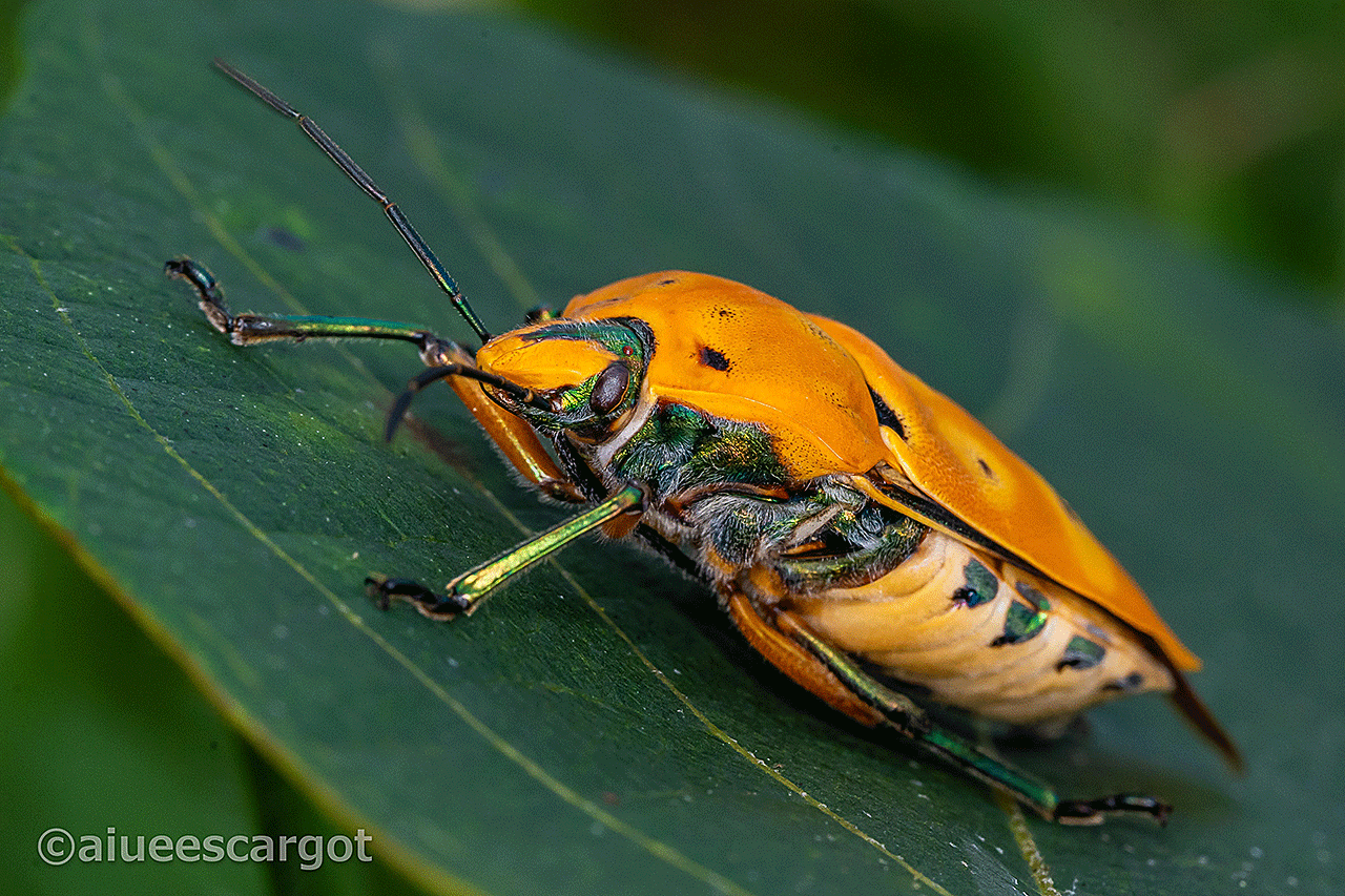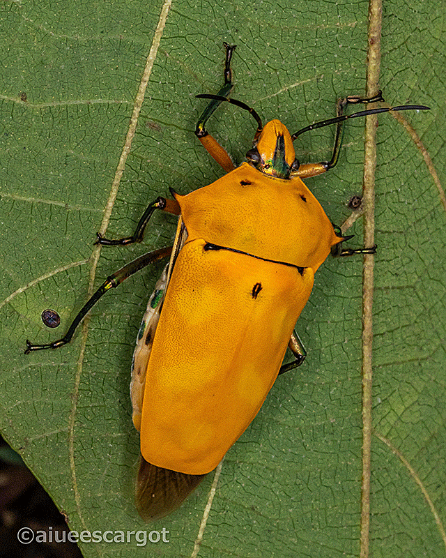 スマホに『アカギカメムシ』と表示された。まさにキンカメムシ科のカメムシ!!