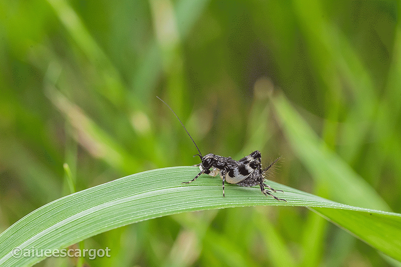 公園の草地でマダラスズ発見。いつもコオロギの幼虫かと見のがしてしまうことが多く、これまで画像に収めることができていなかった。