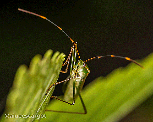 今回はわりとスンナリ見つけたが、細身のクモヘリカメムシが細い草や笹の上に止まっていると、姿と色合いが溶け込んでしまって、見過ごすごとが多い。