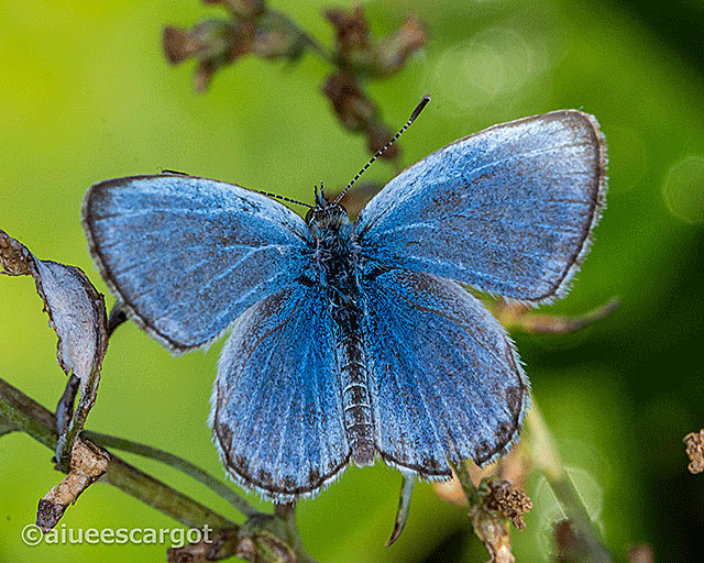 ヤマトシジミです。これまで翅を開いてくれなかったチョウも、今の時期になると温かい陽射しを浴びるため、翅を全開にするので心おきなく鮮やかな表翅の色を観ることができます。