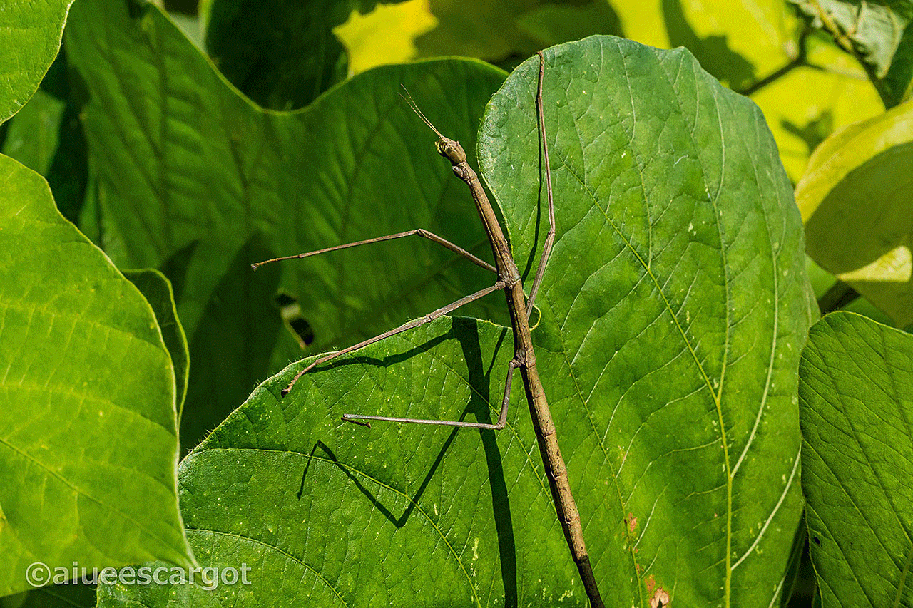 目の前にナナフシモドキ。森を歩いてもナナフシモドキの存在に気づくのはマレだが、まさかこの時期ナナフシモドキに出会うとは思っていなかった。