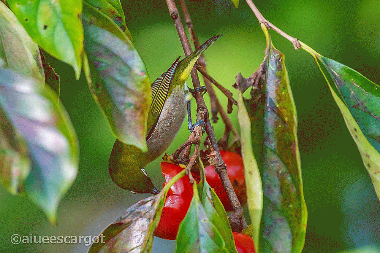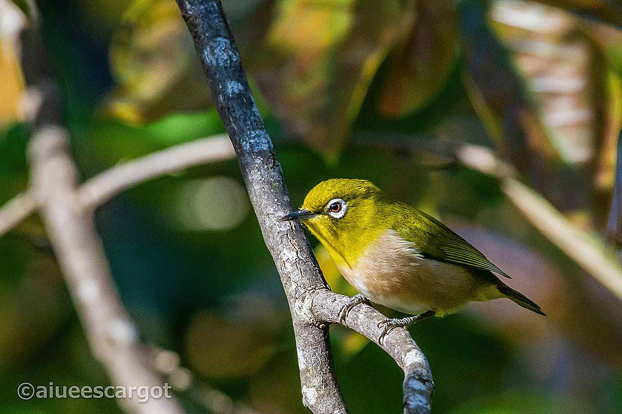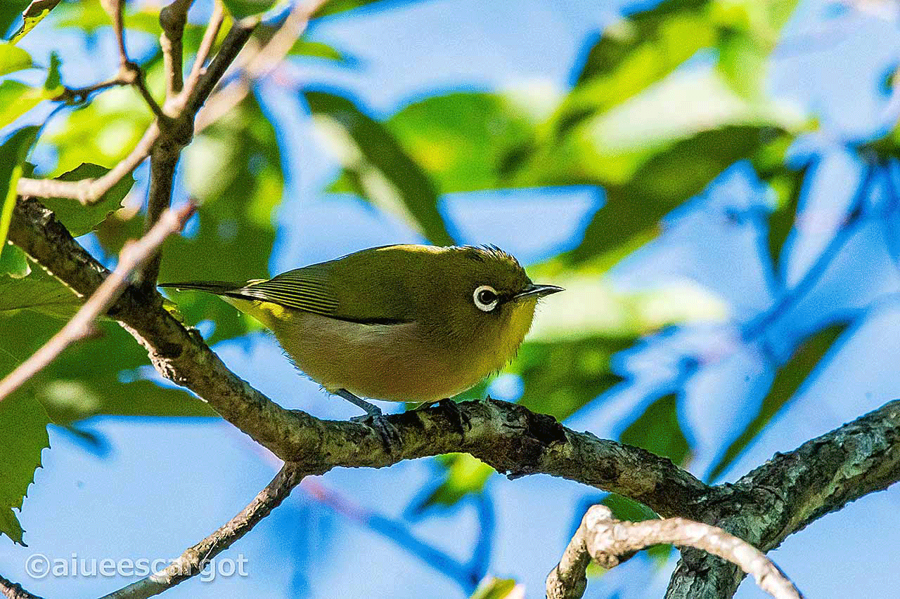 遠目にシルエットで見るメジロはより小さく見えるが、コレぐらい近寄ると「まさしくメ・ジ・ロ」。