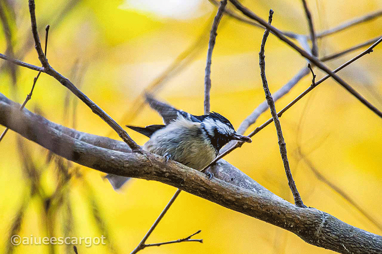 この秋、まだヒガラを見ていないと思っていたら混群の中に一羽発見!