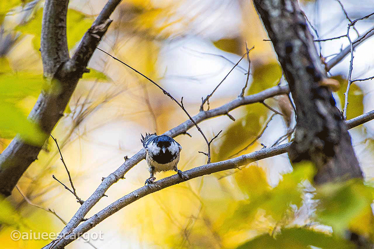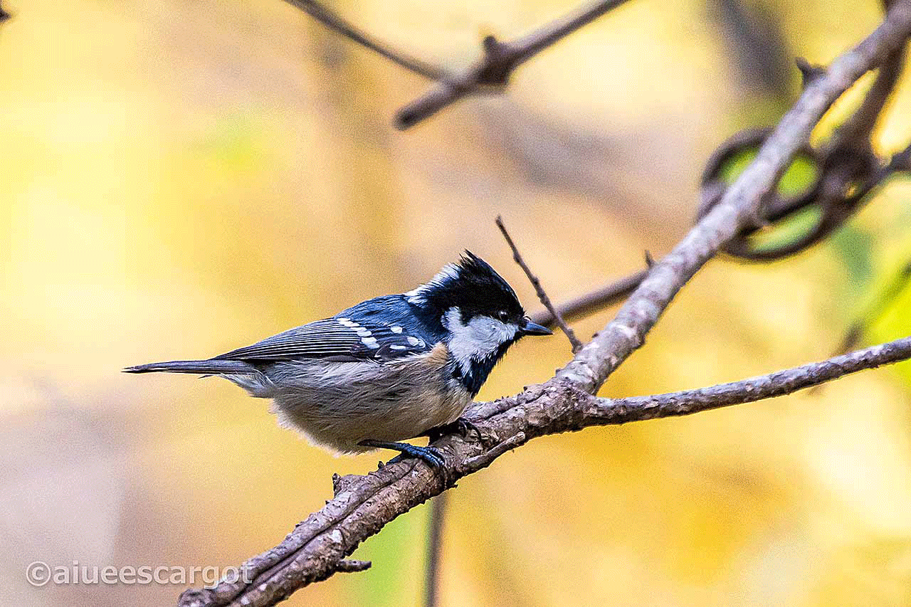 ちょっと見、ヒガラはシジュウカラに雰囲気は似ているが、色合いも大きさもかなり違います。そして、小柄な身体にとんがり帽子をかぶっている(ように見える)ので、誰でもすぐに判ります。