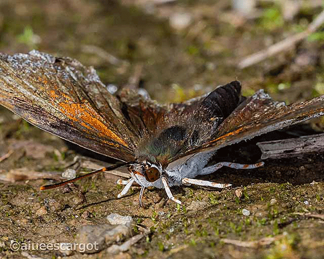 地表を闊歩したあと、このウラギンシジミはどこへともなく飛び去った。