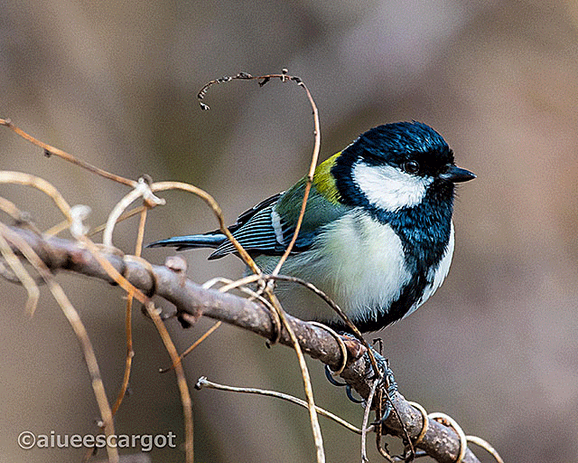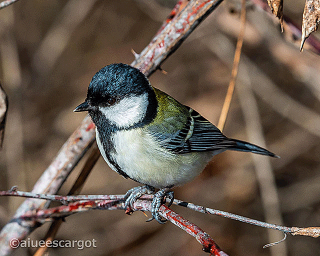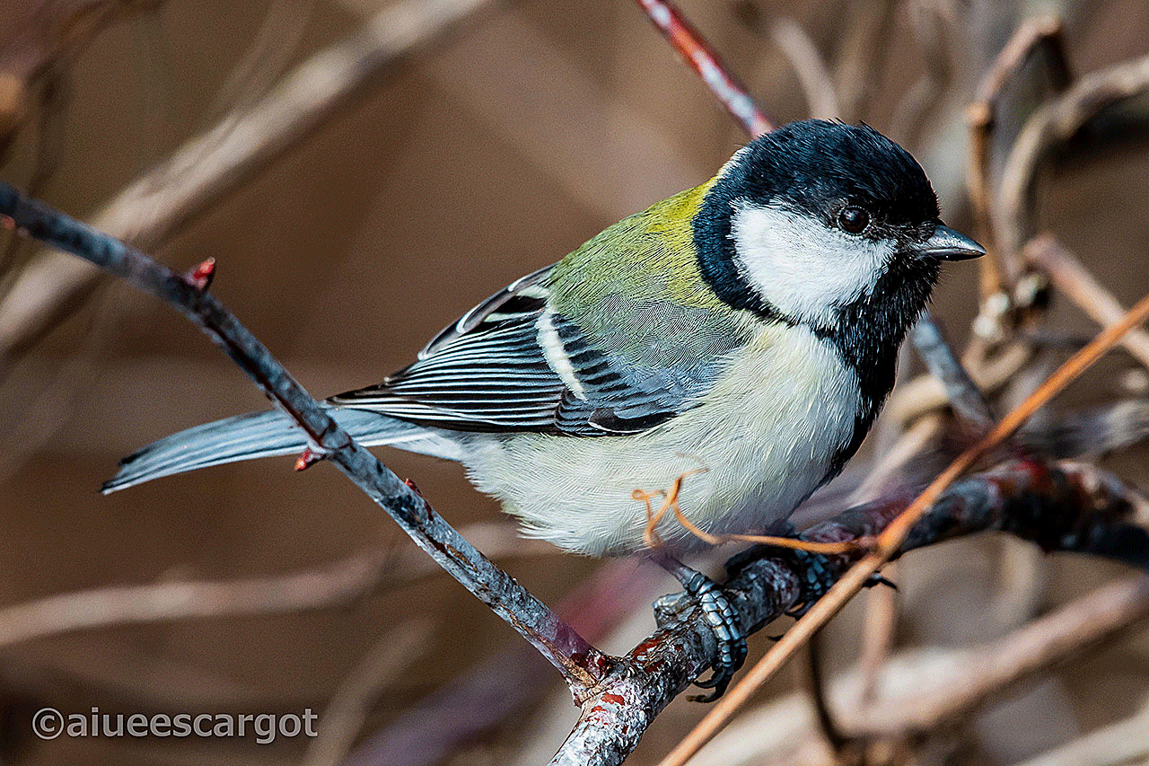 落ちついて小枝に止まっているシジュウカラは、とてもオリコエサンに見えるのに。