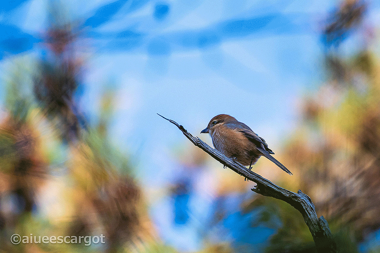 こうして尾っぽフリフリのモズを遠目に観ていると、小さく見えるが、枝から枝へなど移り飛ぶモズの姿は、錯覚なのだろうがひと回り以上大きく見える?
