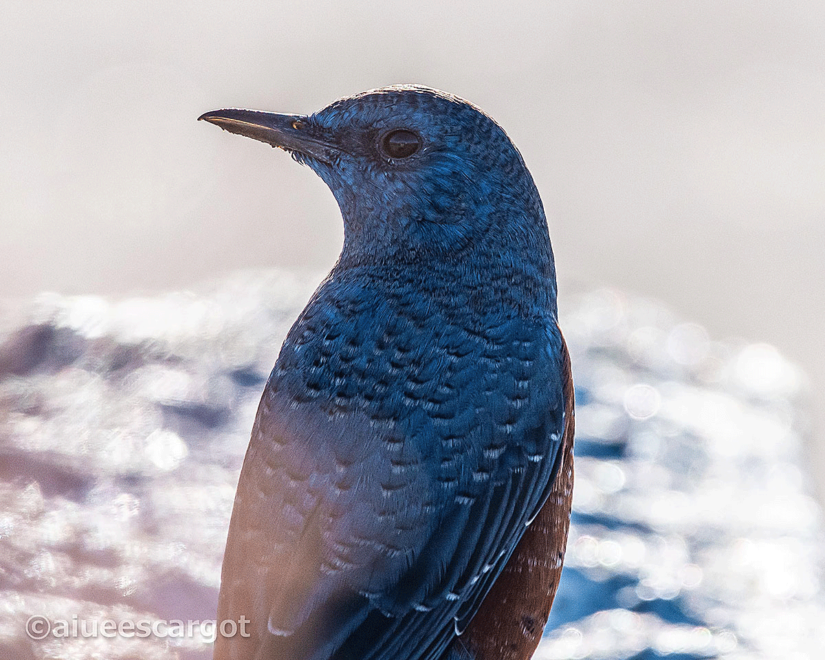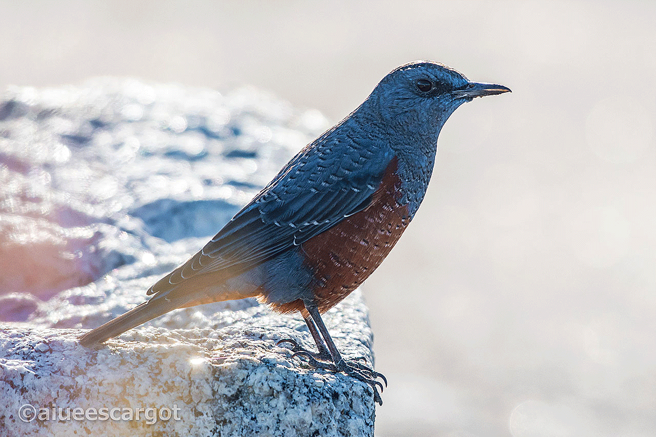 右へ目をやると眩しい朝の光の中にイソヒヨドリが止まっていた。