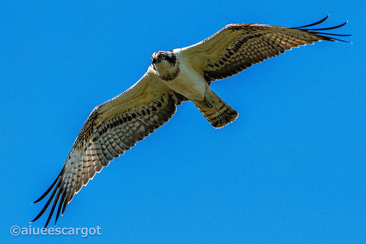 飛行の後、細い杭に止まり延々とこちらの様子をうかがっている?ようなミサゴ。