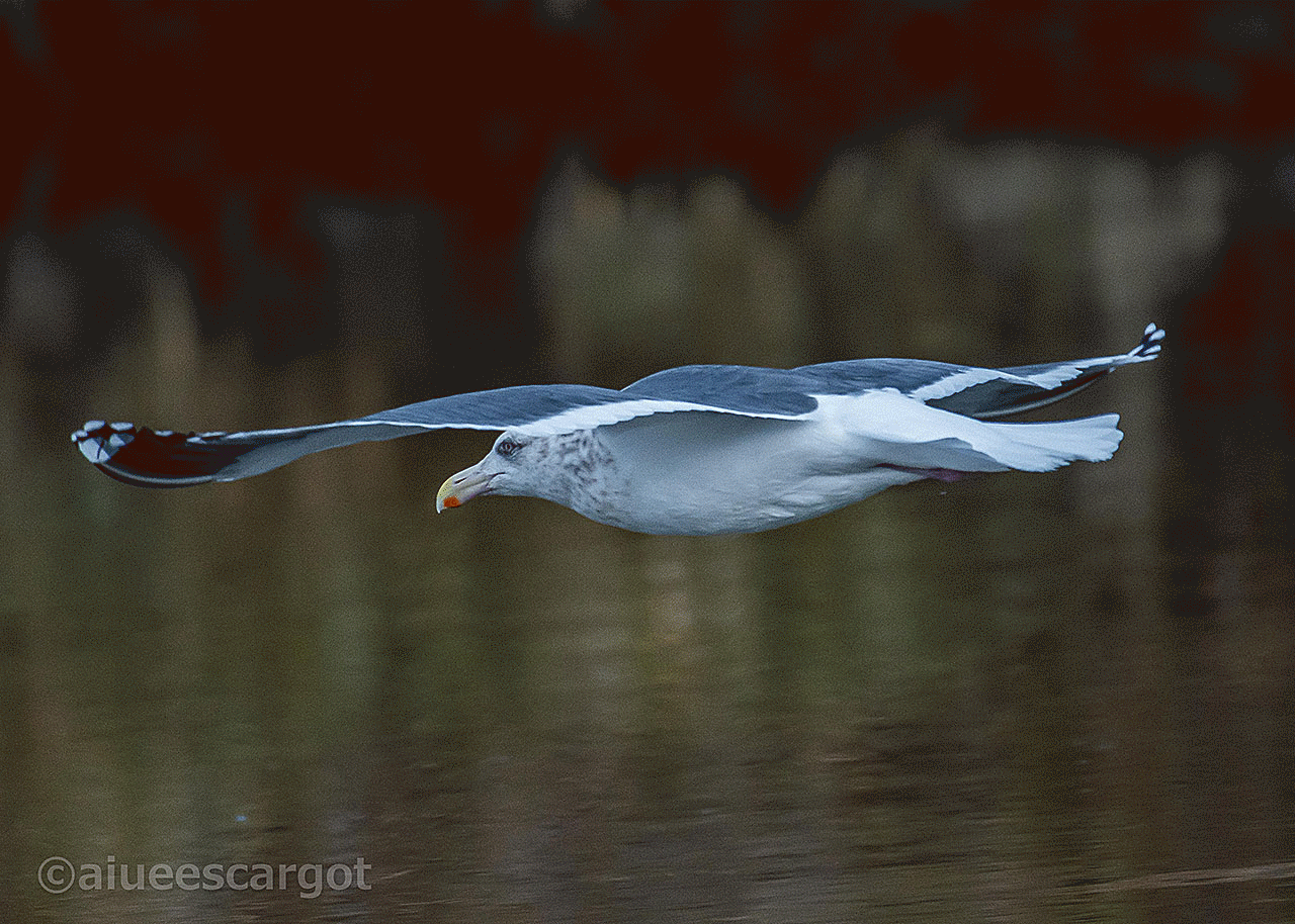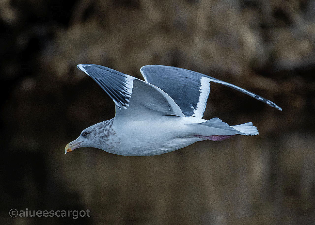 それにしてもオオセグロカモメが翼を広げ飛行する姿はスッキリして、かつダイナミック。