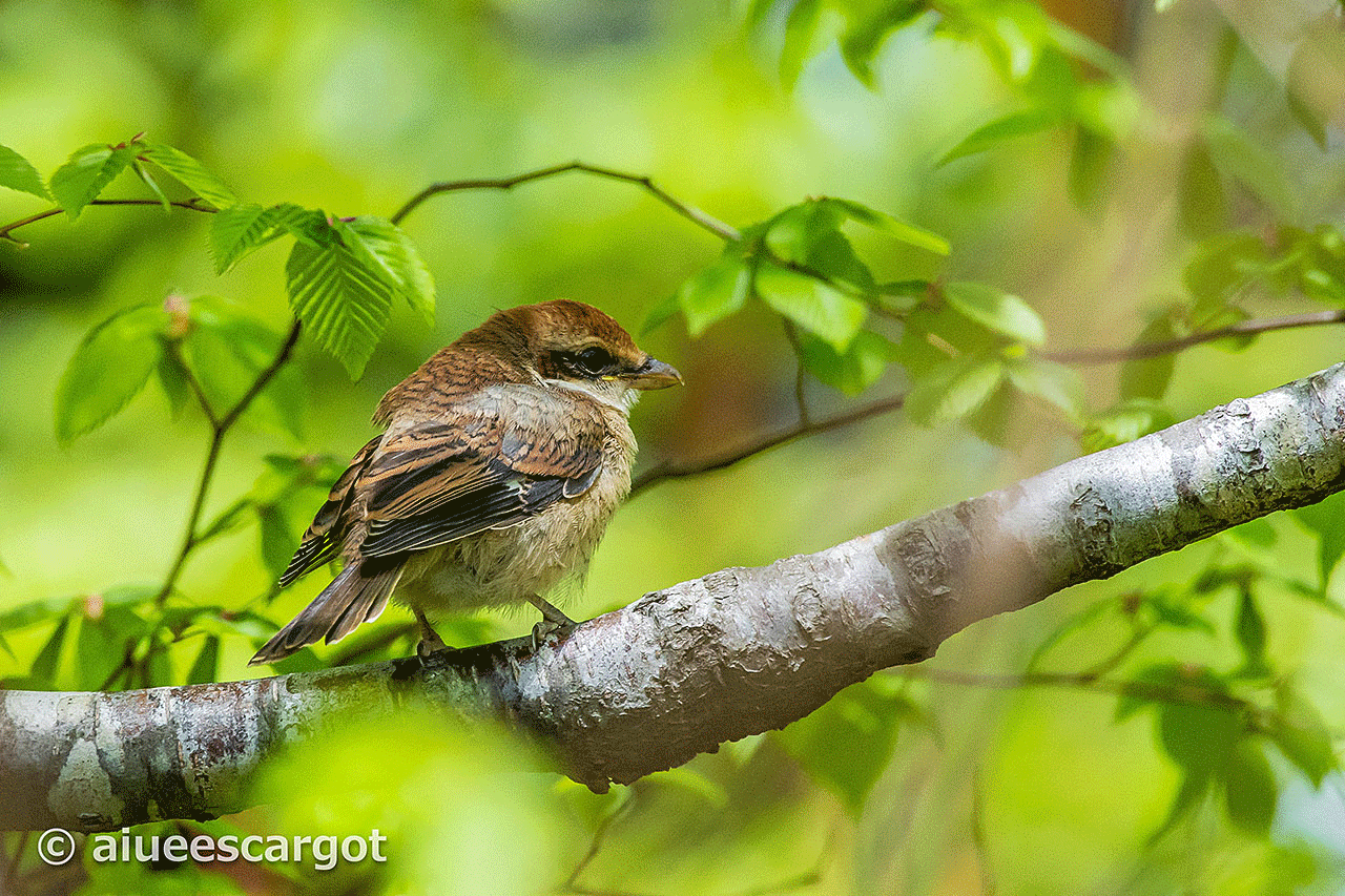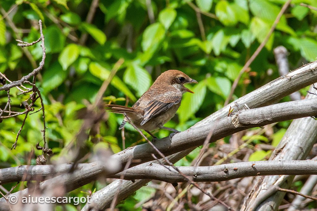 どこを歩いても、森は幼鳥ラッシュ。中でも、モズの幼鳥は出たがり屋のようで、大きな声で目につく場所で騒ぎたてる。
